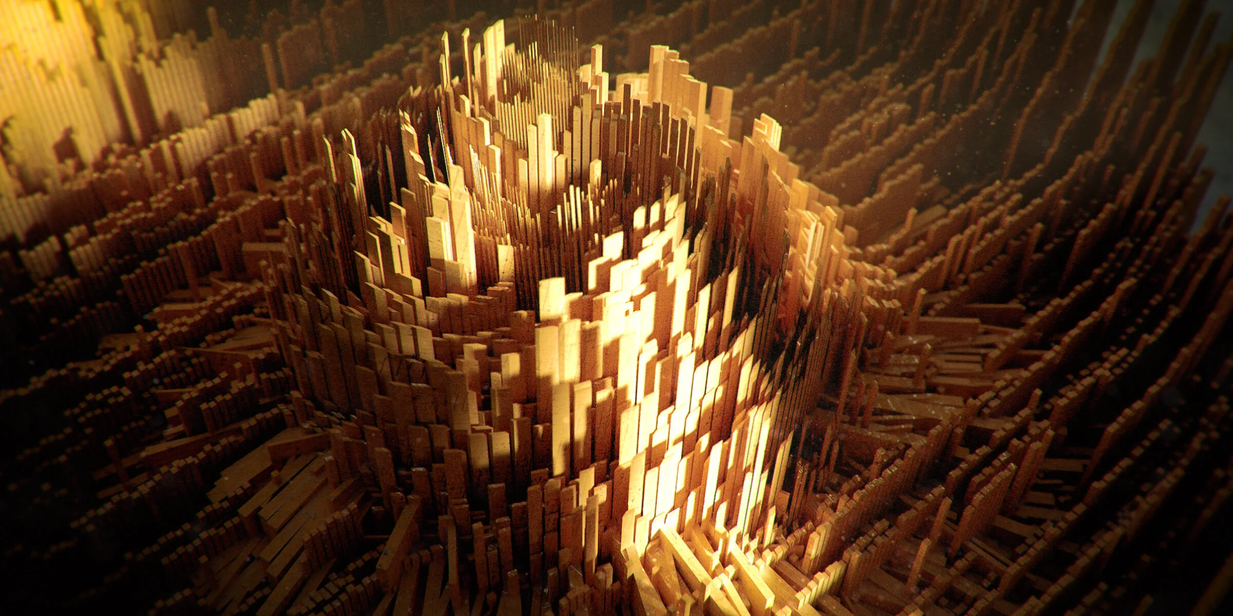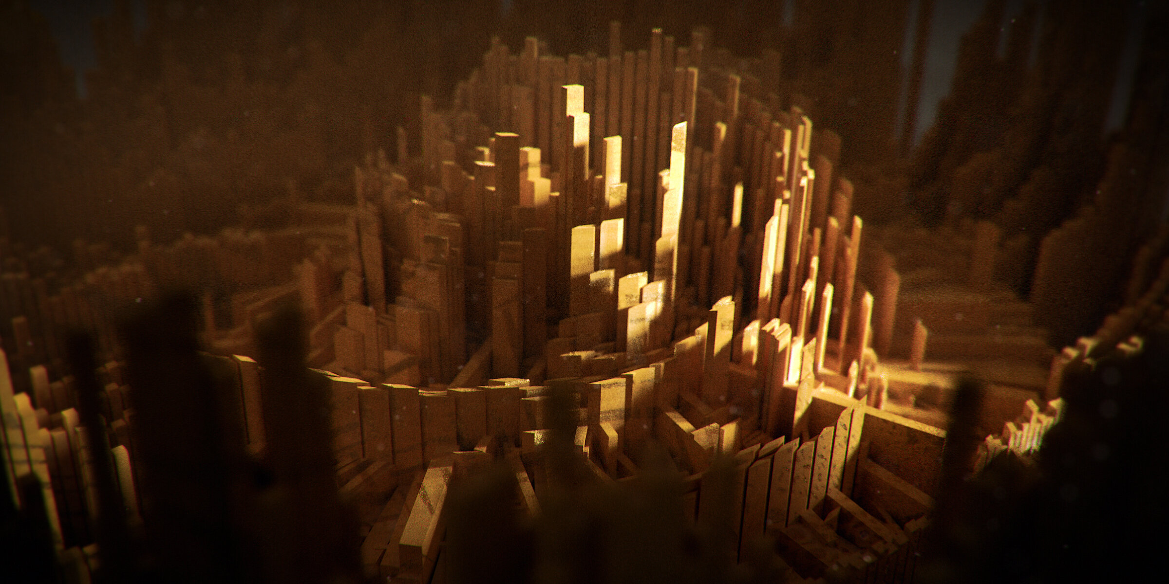 Gold City — Abstract 3D Illustrations - 3ds Max, TyFlow, Redshift